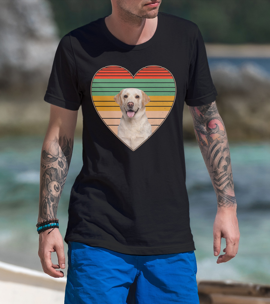 Vintage Labrador Retriever Heart Dog Lover Retro Stripes T-Shirt