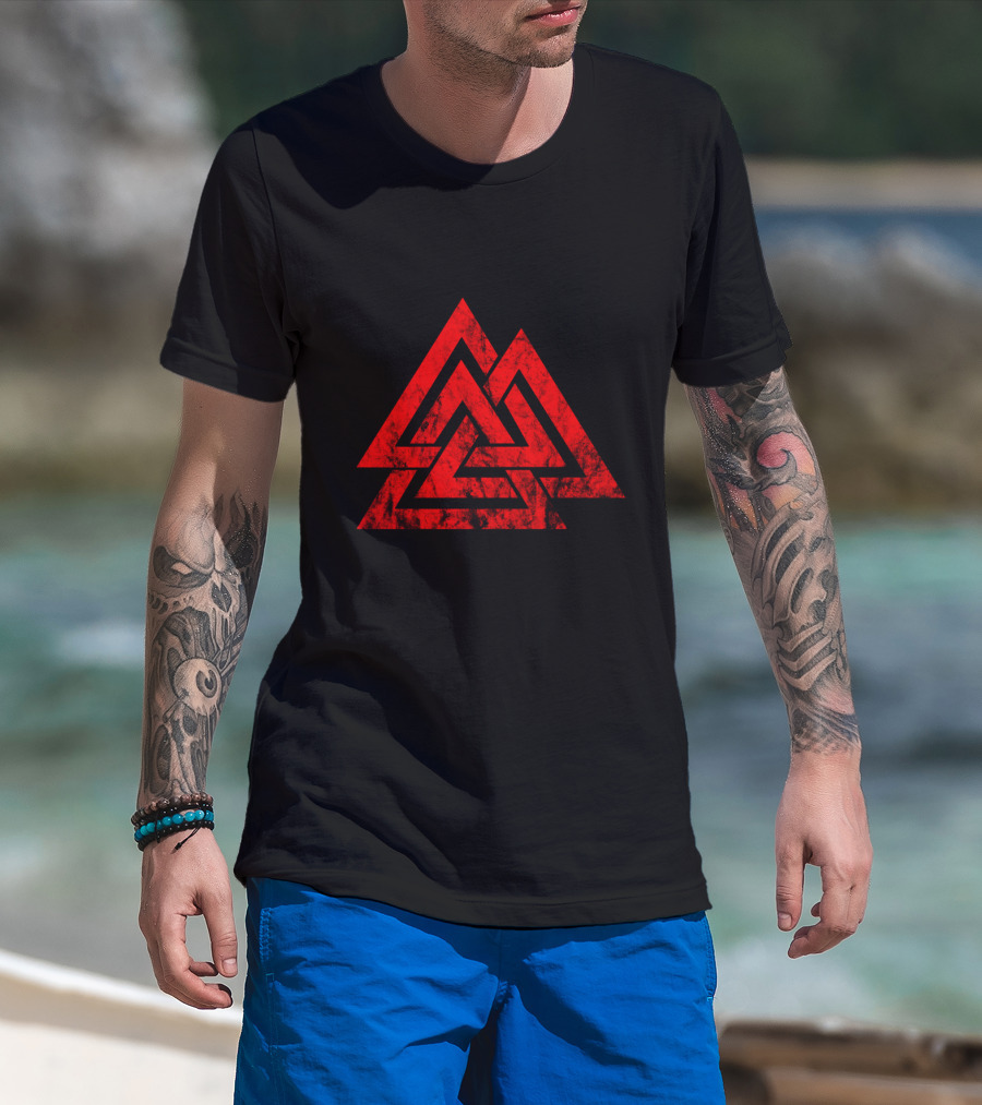 Valknut Symbol Nordic Viking Odin Sign Wicca Red Triangles T-Shirt