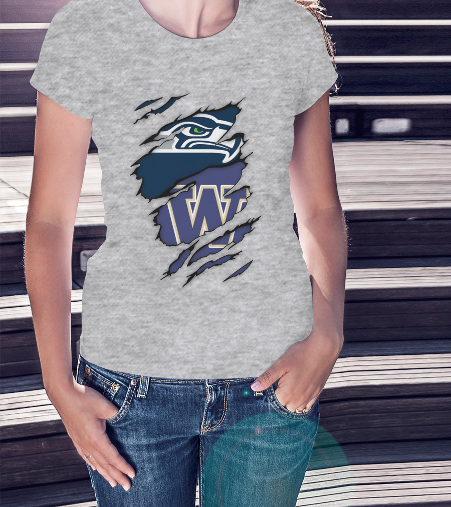 Seahawks University Of Washington Huskies Logo Fusion T-Shirt