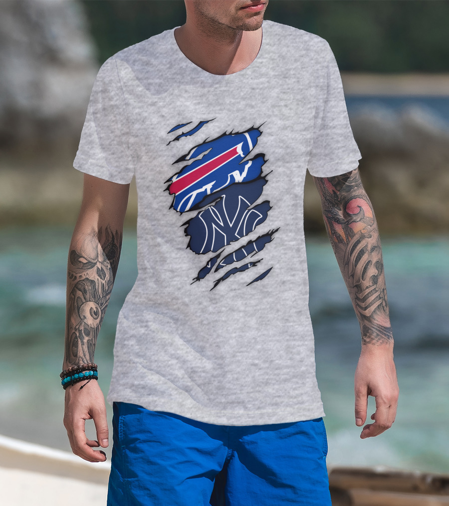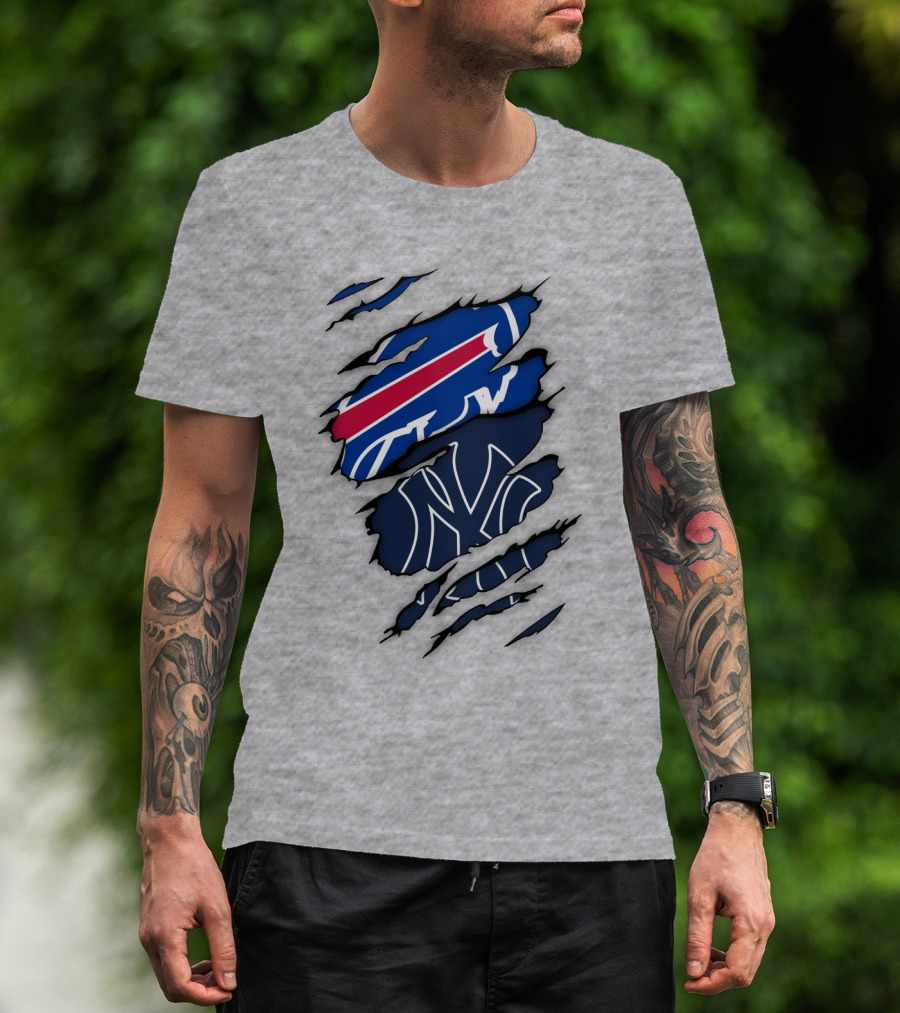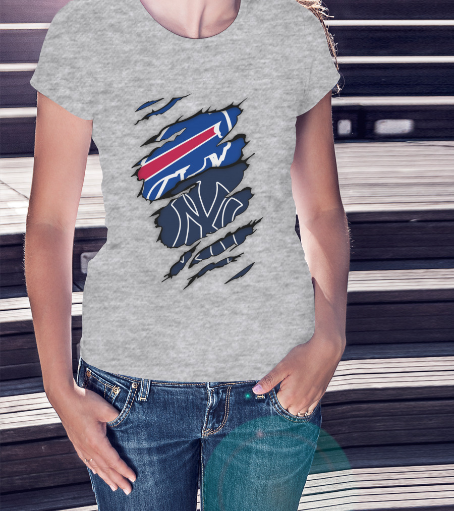 New York Yankees Buffalo Bills Torn Logo Mashup T-Shirt