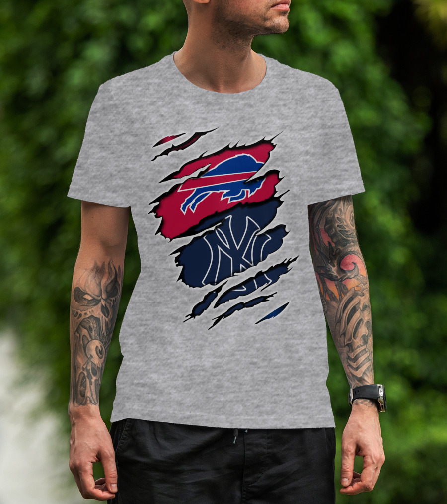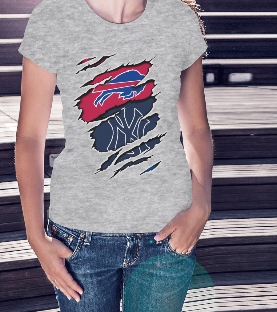 Buffalo Bills New York Yankees Torn Logo Mashup T-Shirt