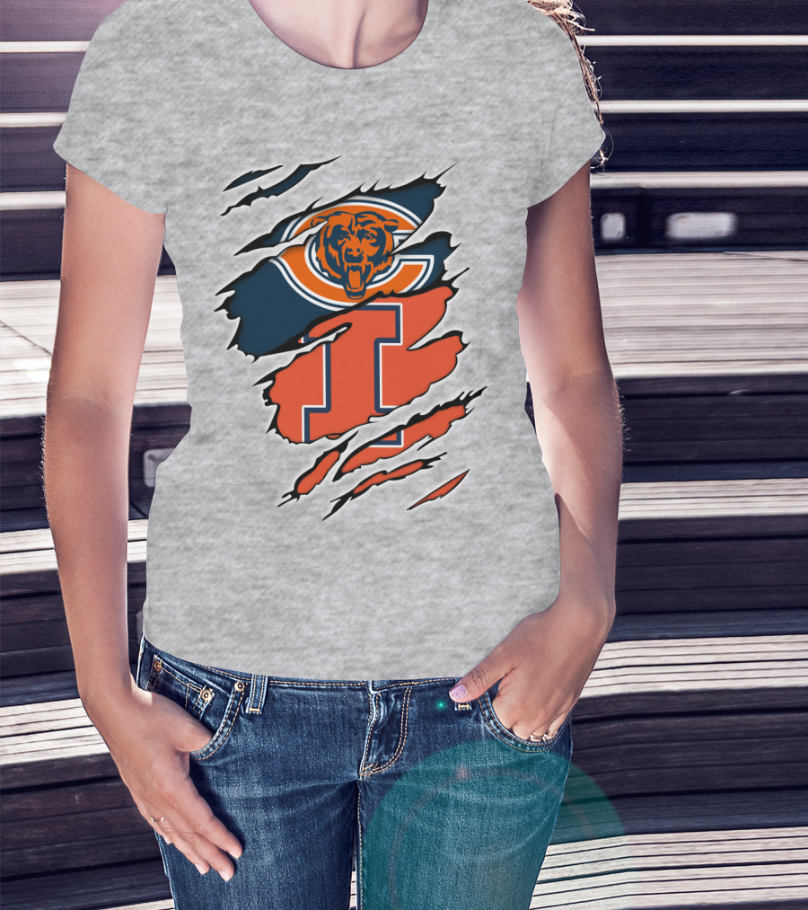 Chicago Bears Illinois Fighting Illini Fan Logo Mashup T-Shirt