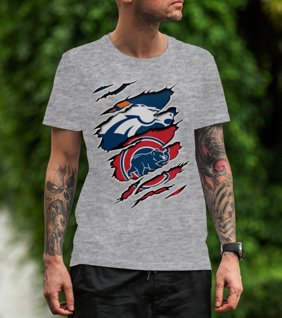 Broncos Cubs Scratching Logos Fusion T-Shirt