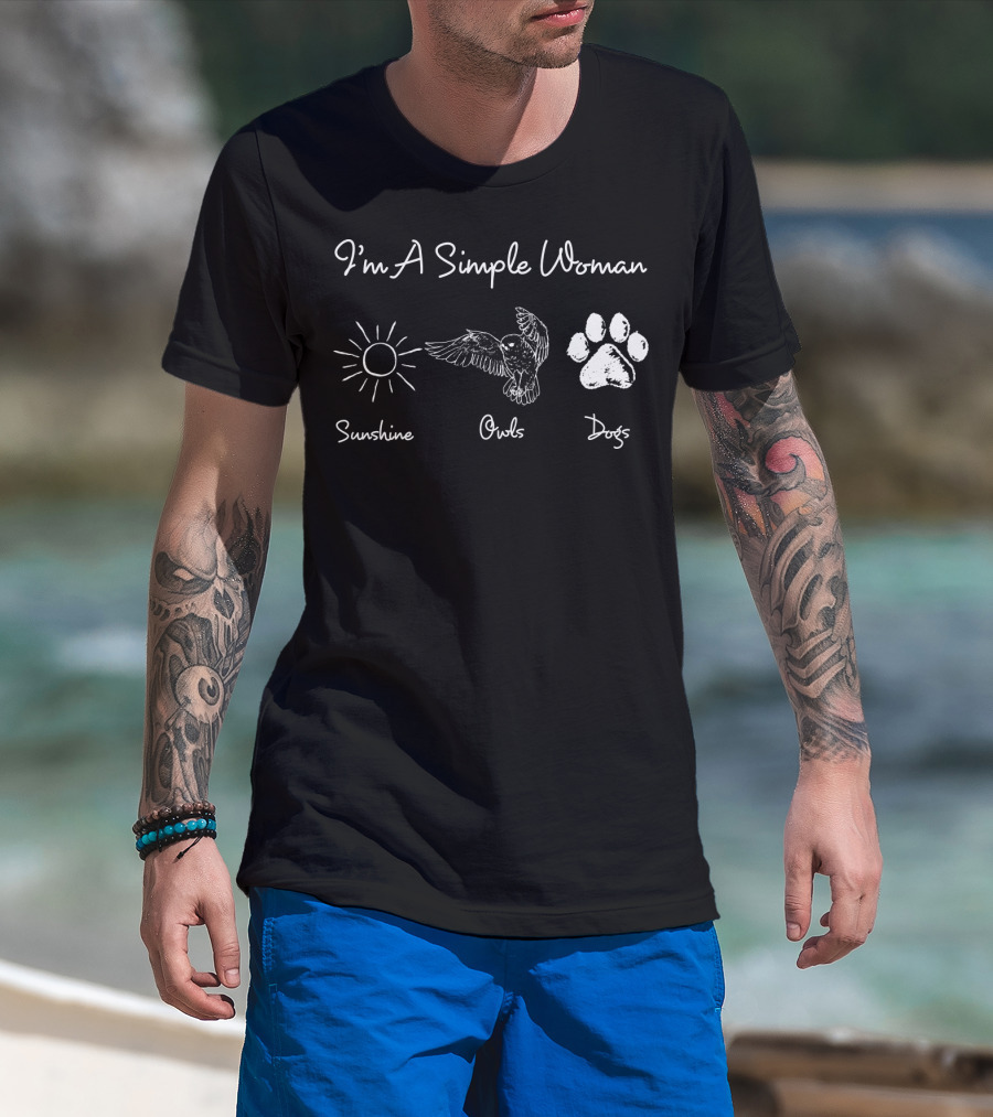 I'm A Simple Woman Who Loves Sunshine Owls And Dogs T-Shirt