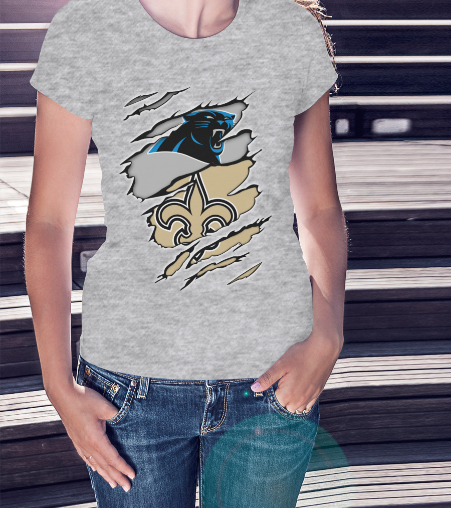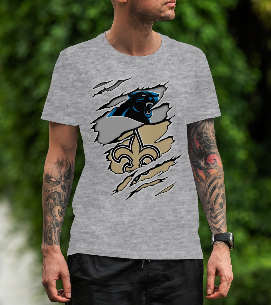 Panther Saint Split Ripped Design Fleur-de-Lis Panther Emblem Fusion T-Shirt