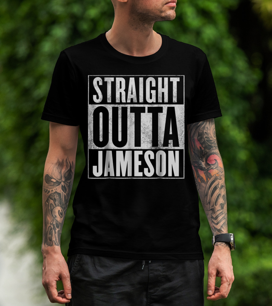 The Straight Outta Jameson T-shirt is designed for everyday wear and a consistent fit. Fabric is pre-shrunk ring-spun cotton with durable stitching. See the size chart below for exact measurements.