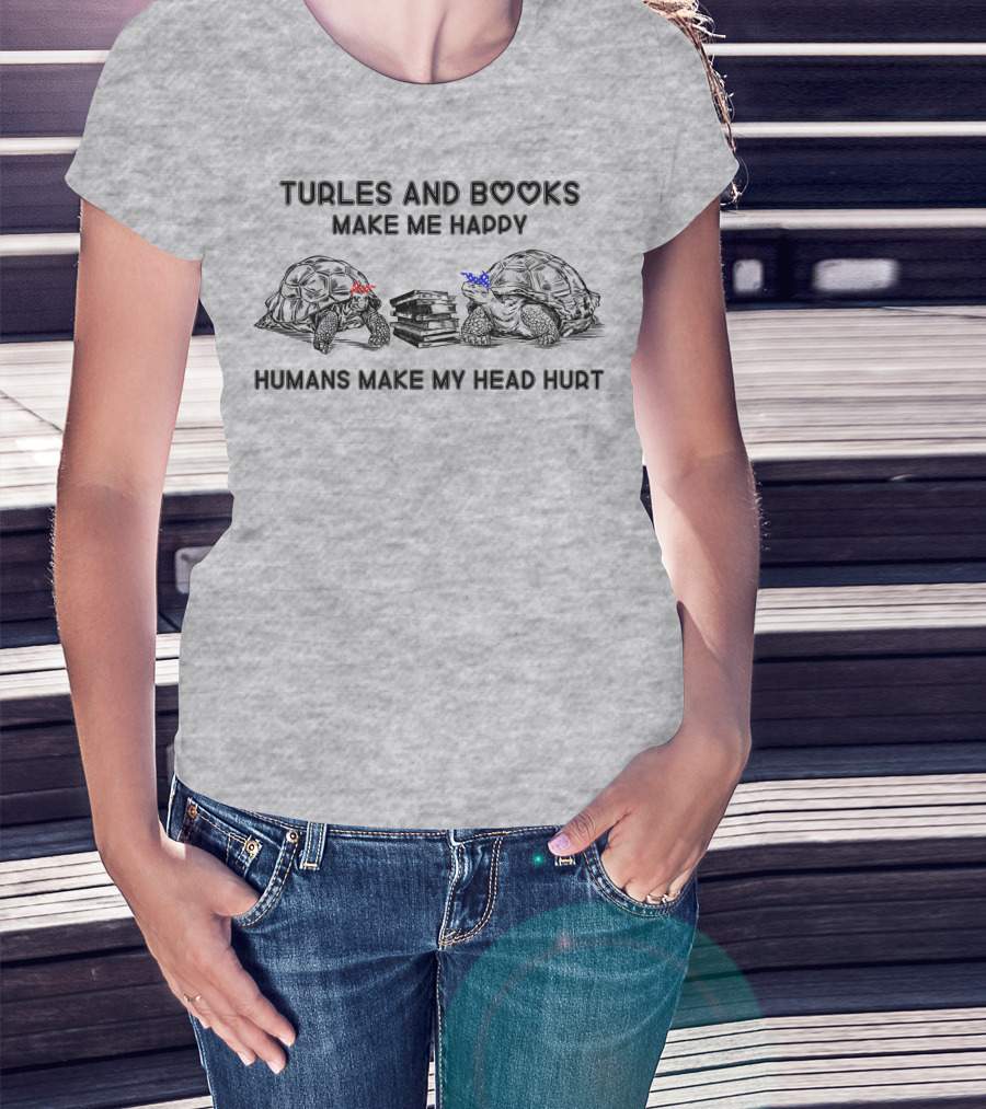 Turtles And Books Make Me Happy Humans Make My Head Hurt T-Shirt