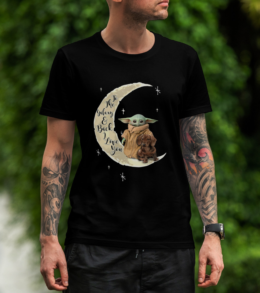 To The Galaxy And Back I Love You Baby Yoda Dachshund Moon Stars T-Shirt