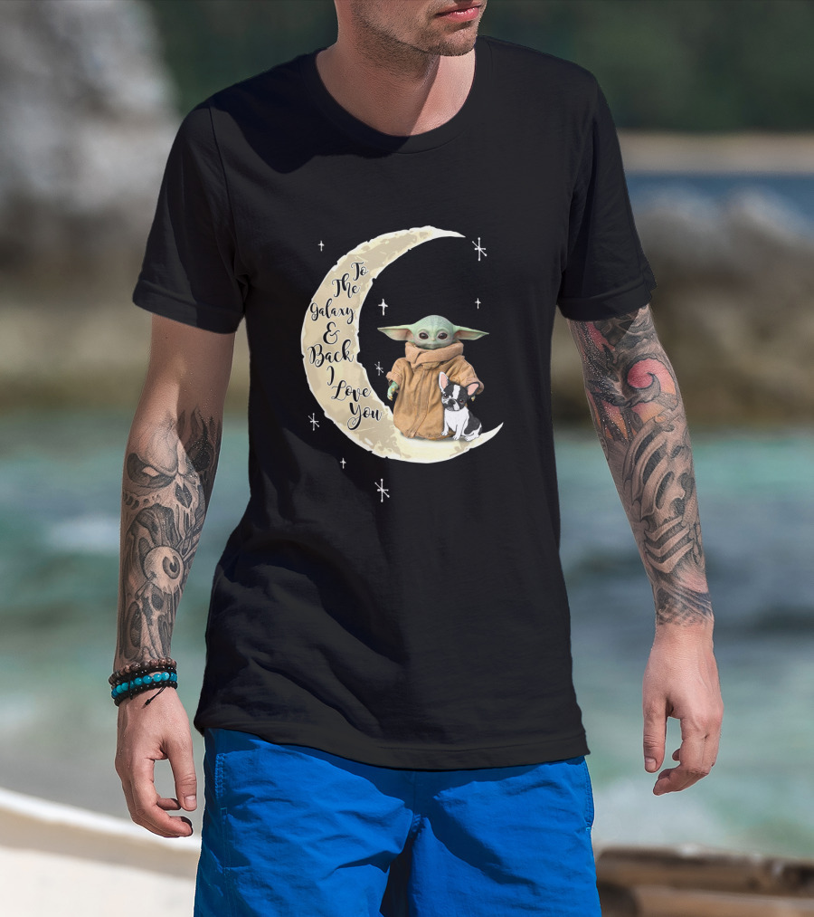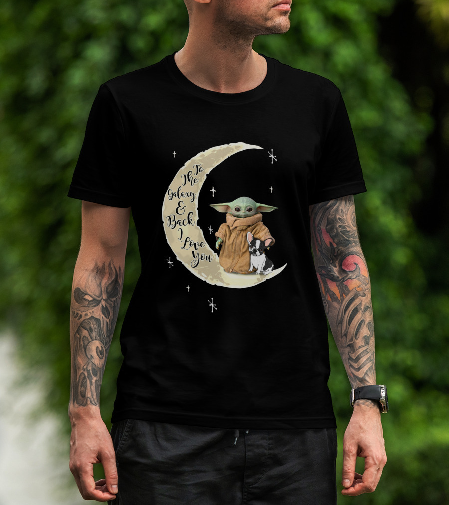 To The Galaxy And Back I Love You Baby Yoda French Bulldog Moon T-Shirt