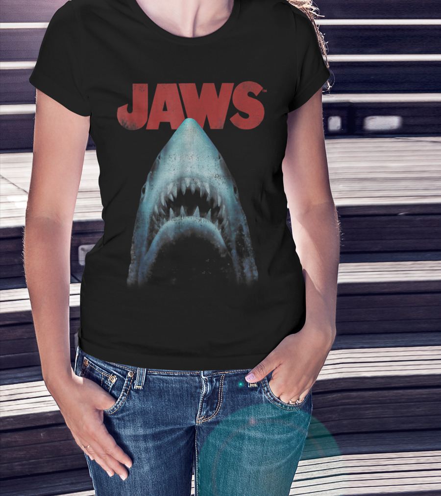The Jaws Classic Movie Shark Closeup T-shirt is designed for everyday wear and a consistent fit. Fabric is pre-shrunk ring-spun cotton with durable stitching. See the size chart below for exact measurements.