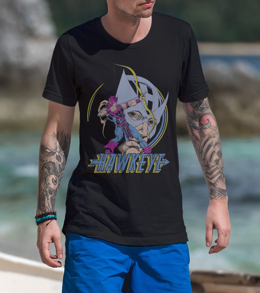 Hawkeye Ready Aim Fire Classic Marvel Archery Action T-Shirt