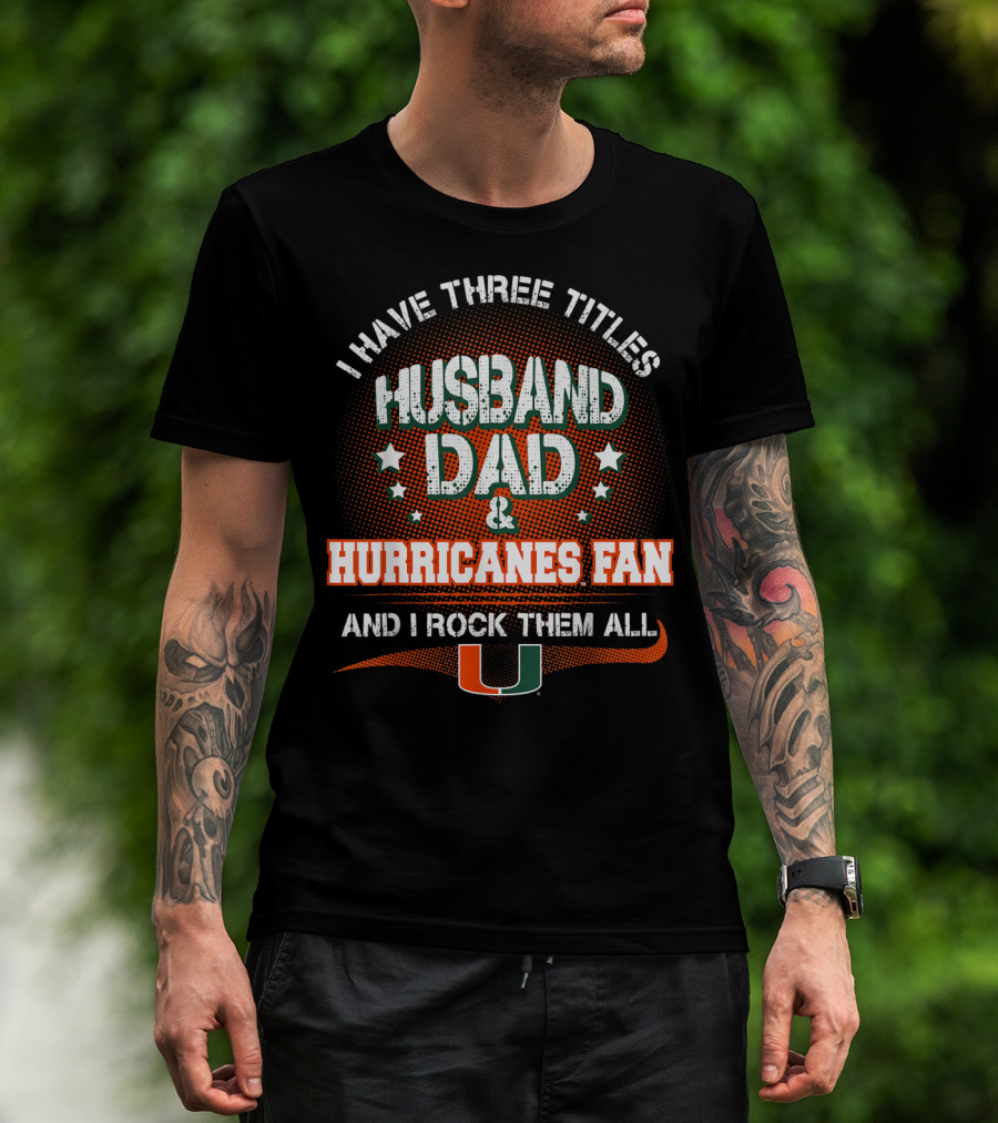 I Have Three Titles Husband Dad Hurricanes Fan And I Rock Them All U T-Shirt