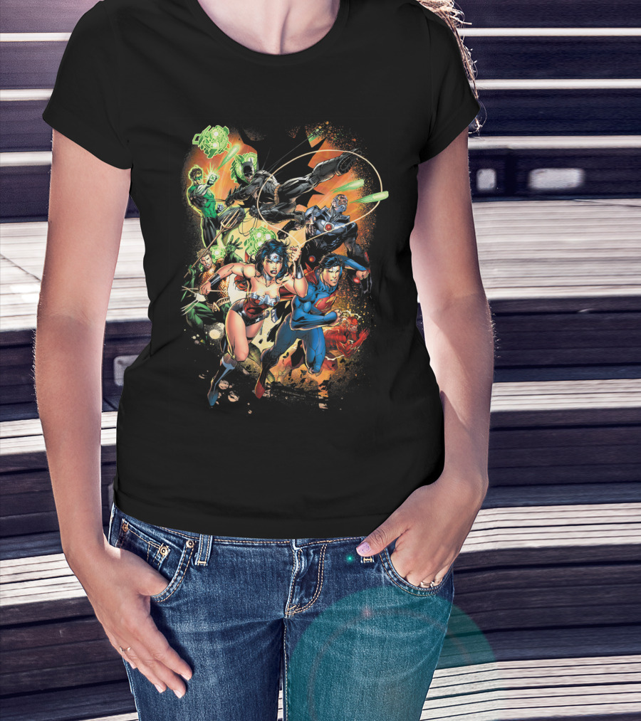 The Justice League Battle Ready Heroes in Action T-shirt is designed for everyday wear and a consistent fit. Fabric is pre-shrunk ring-spun cotton with durable stitching. See the size chart below for exact measurements.