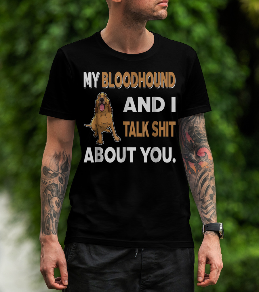 The My Bloodhound And I Talk Shit About You T-shirt is designed for everyday wear and a consistent fit. Fabric is pre-shrunk ring-spun cotton with durable stitching. See the size chart below for exact measurements.