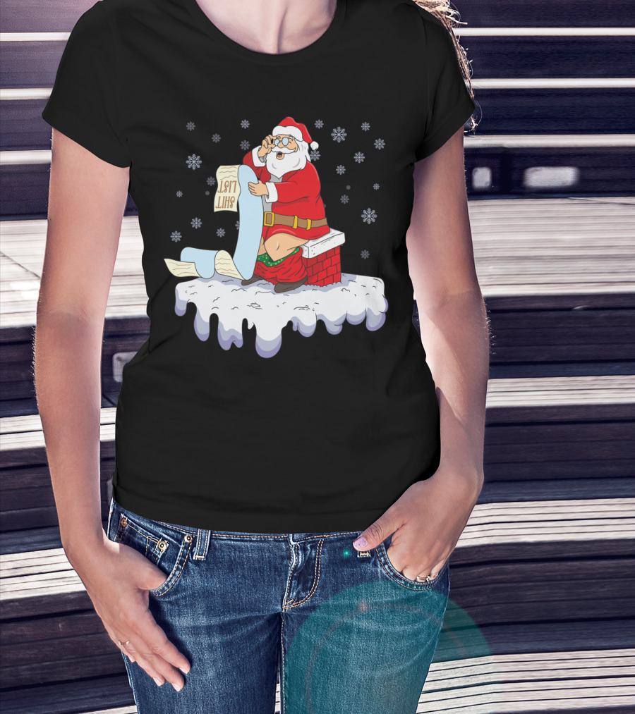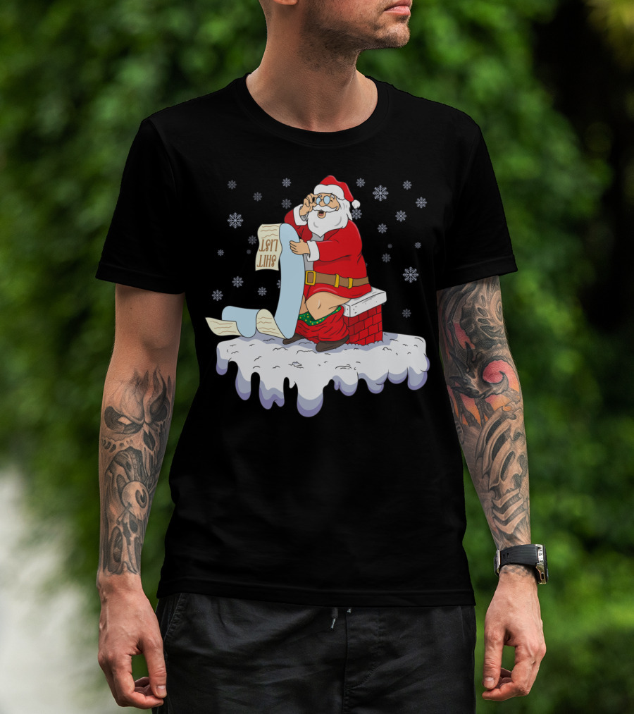 Naughty Santa On The Chimney With Naughty List T-Shirt