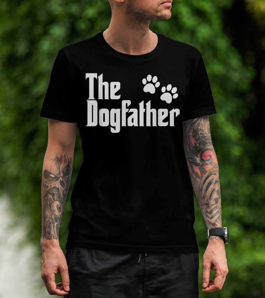 The The Dogfather with Paw Prints Text T-shirt is designed for everyday wear and a consistent fit. Fabric is pre-shrunk ring-spun cotton with durable stitching. See the size chart below for exact measurements.