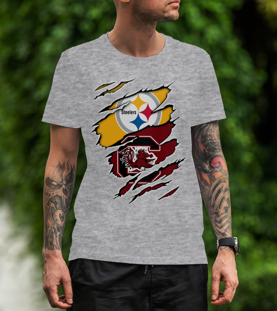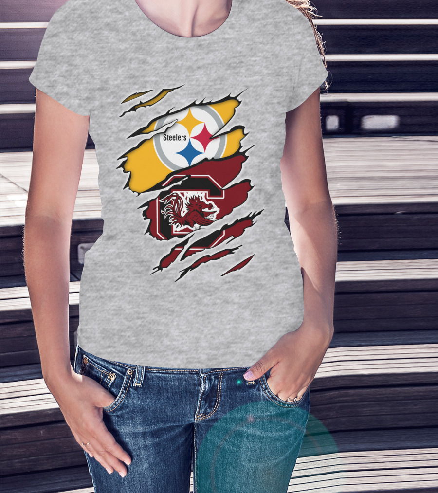 Steelers Gamecocks Logo Mashup With Scratch Marks T-Shirt