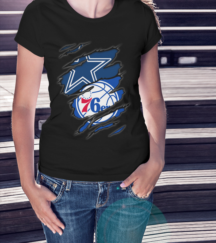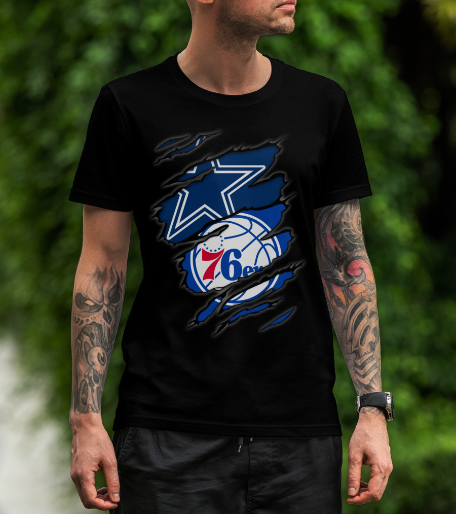 Cowboys Star And Philadelphia 76ers Logo Fusion T-Shirt