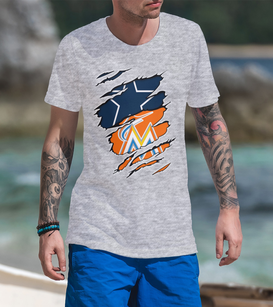 The Cowboys Marlins Logo Tear T-shirt is designed for everyday wear and a consistent fit. Fabric is pre-shrunk ring-spun cotton with durable stitching. See the size chart below for exact measurements.