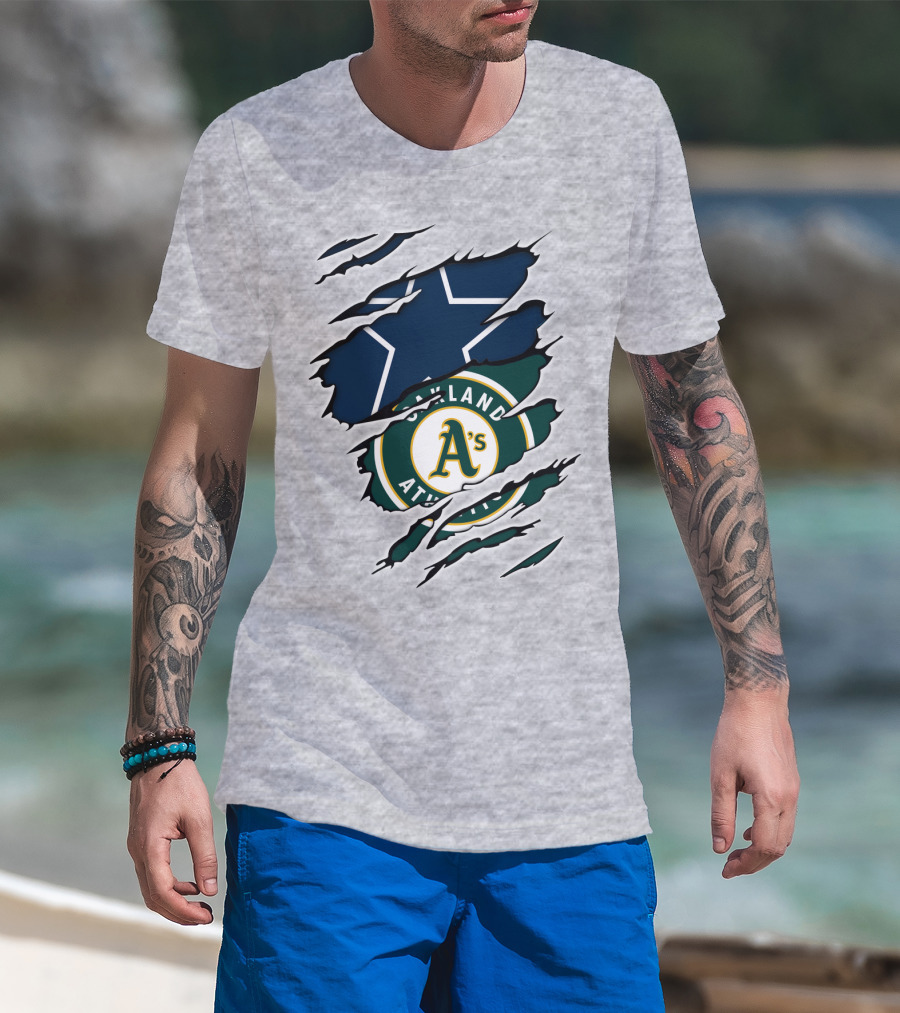 The Oakland Athletics Cowboys Star Burst T-shirt is designed for everyday wear and a consistent fit. Fabric is pre-shrunk ring-spun cotton with durable stitching. See the size chart below for exact measurements.