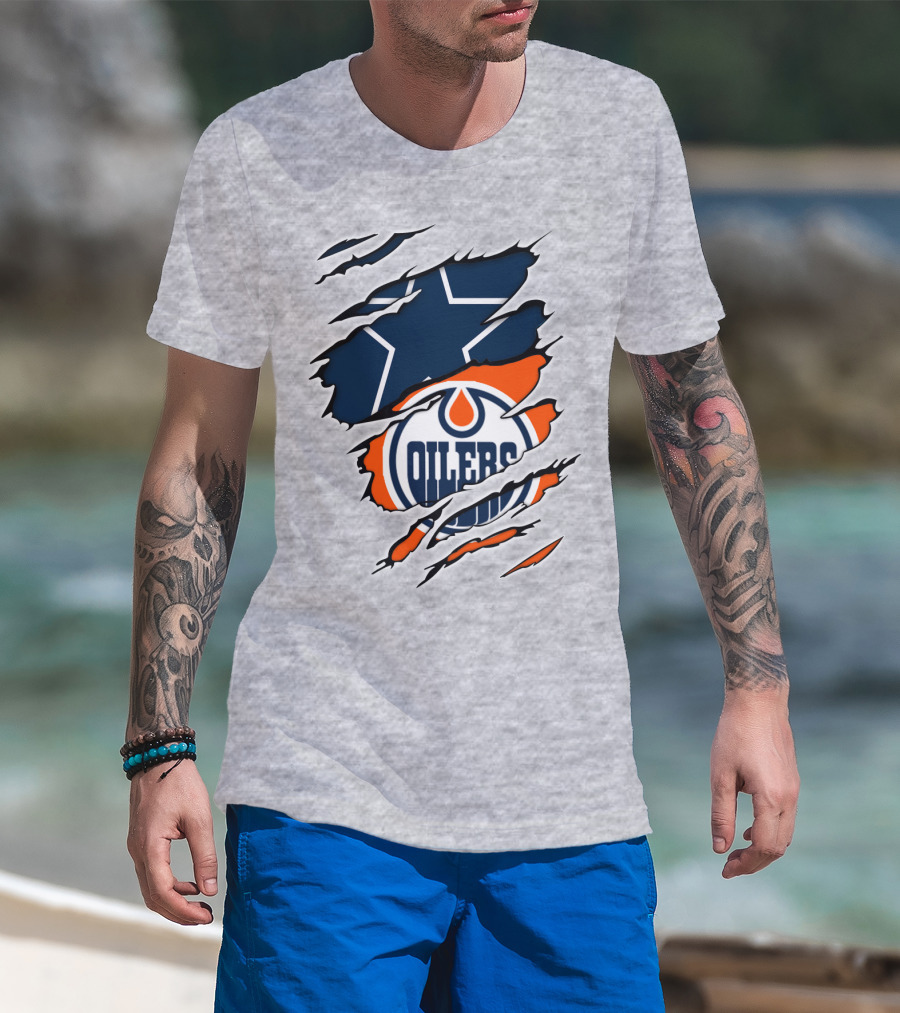 Cowboys Oilers Logos Ripped T-Shirt