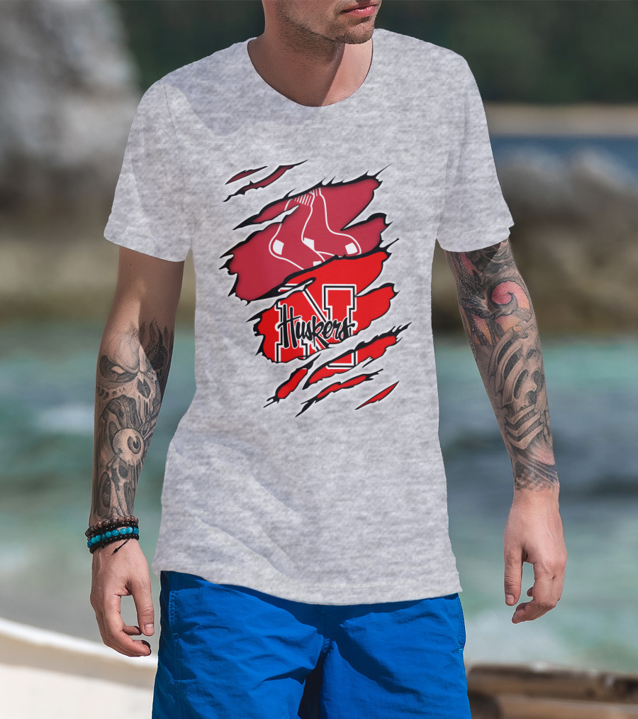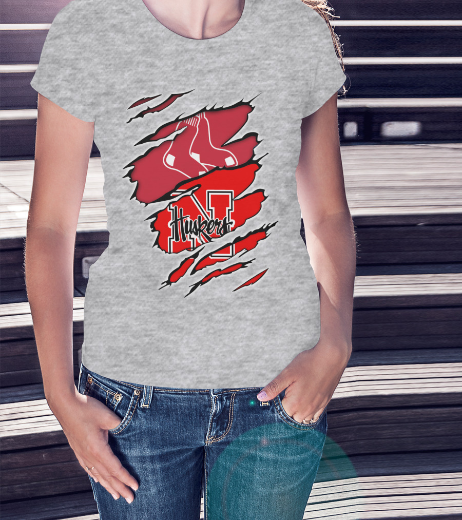 Huskers Red Sox Logo Mashup Nebraska N T-Shirt