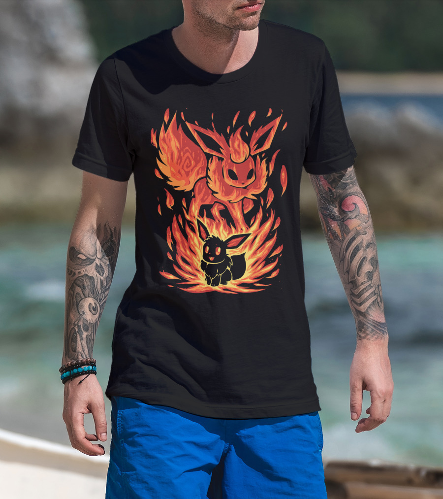 Eevee To Flareon Evolution Fire Transformation Pokemon T-Shirt