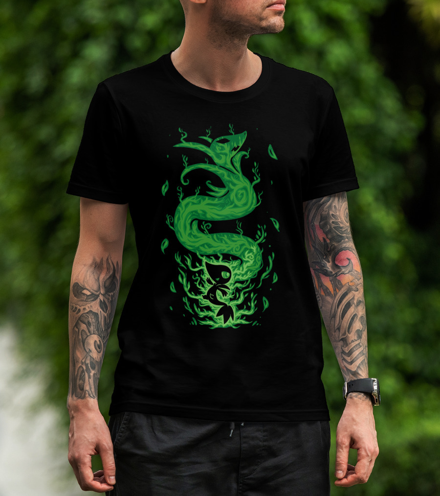 EVOLUTION POKEMON SERPERIOR COILED GREEN FLAMES WITH LEAVES T-Shirt
