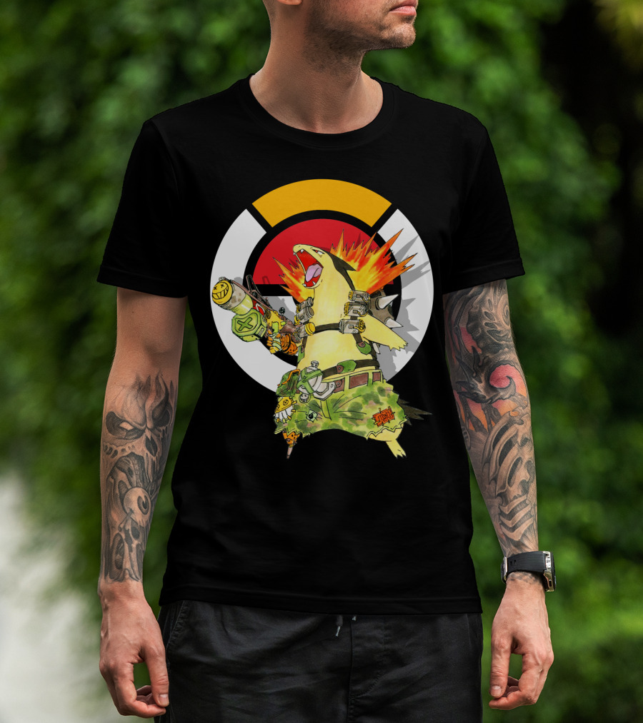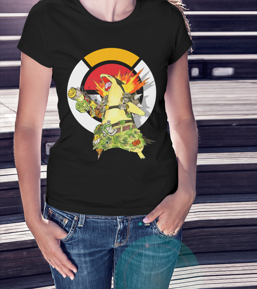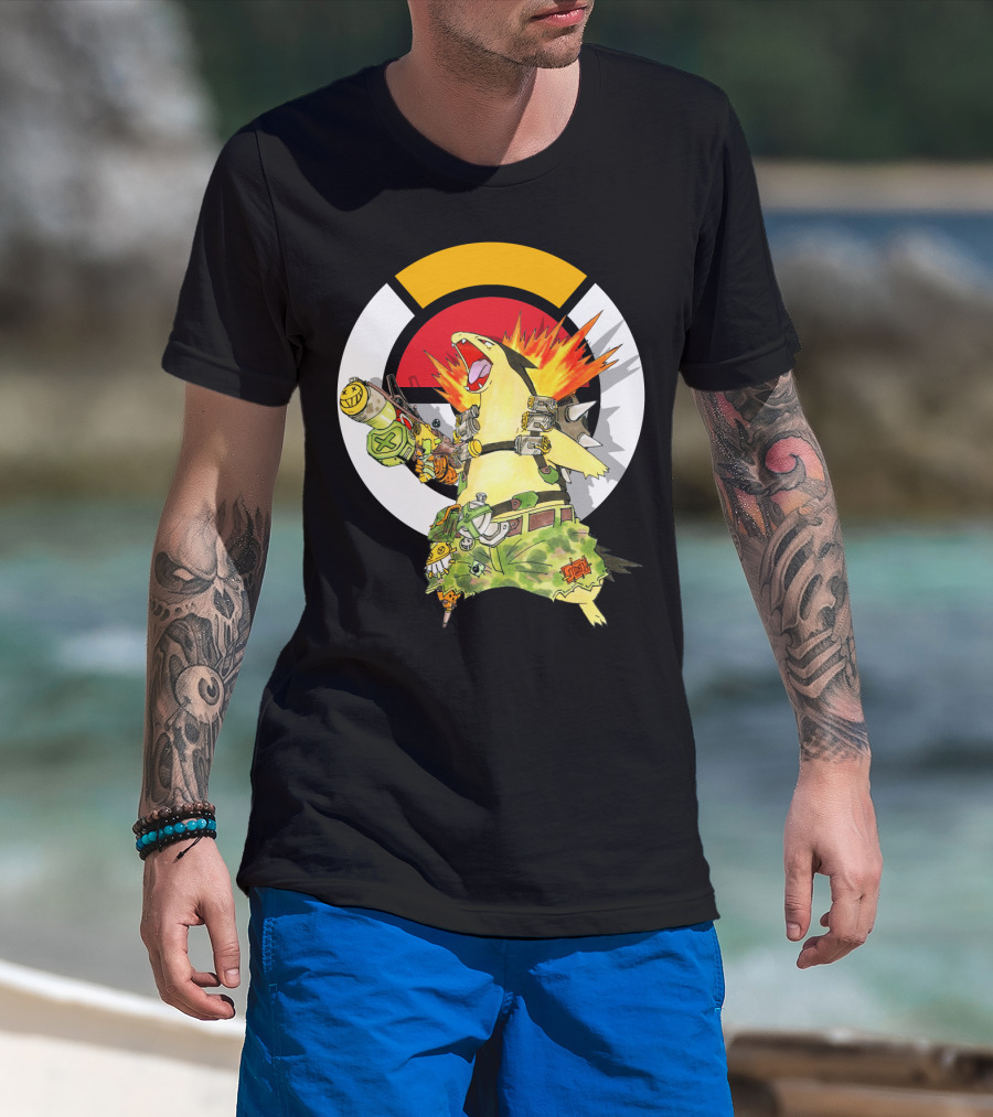 POKEMON TYPHLOSION JUNKRAT CROSSOVER SYMBOL BACKGROUND T-Shirt