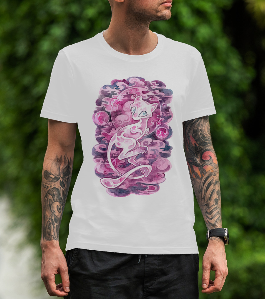 WATERCOLOR POKEMON MEW PURPLE SWIRLS AND ORBS T-Shirt