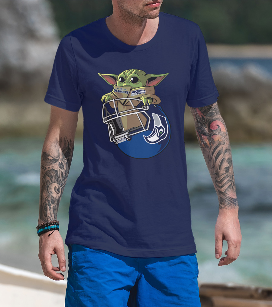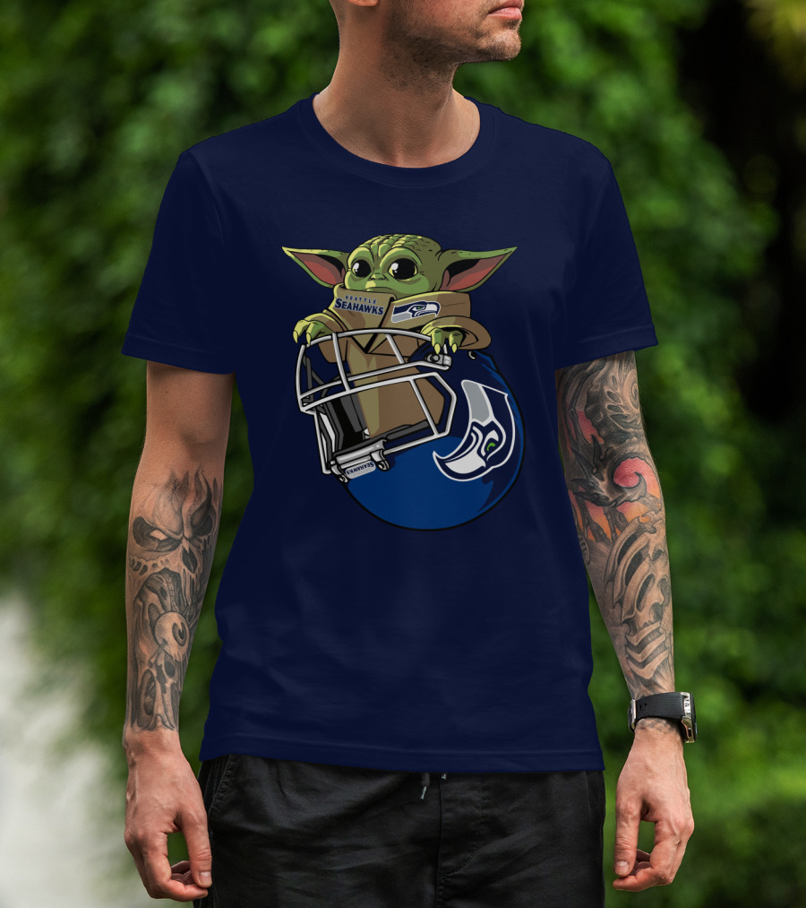 Seattle Seahawks Baby Yoda Helmet Fan T-Shirt
