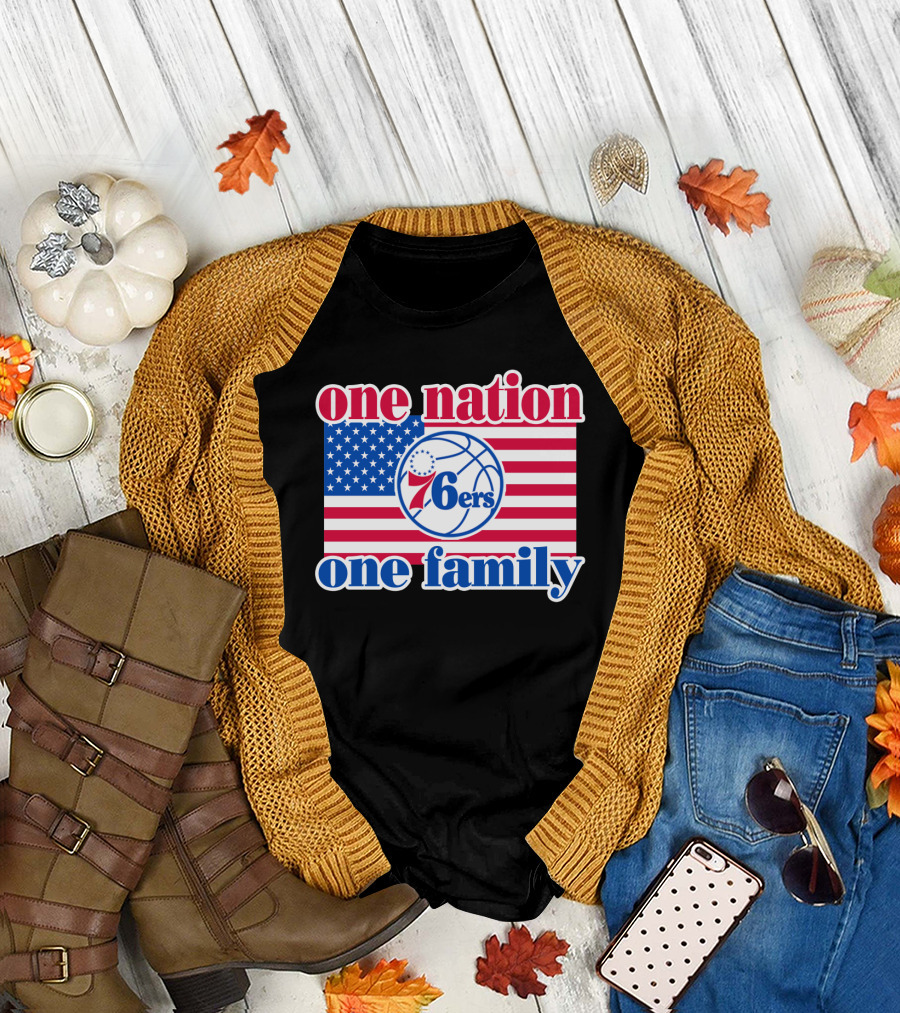 One Nation One Family Philadelphia 76ers 68 American Flag Basketball T-Shirt