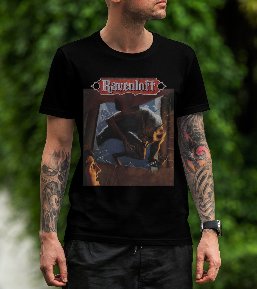 Ravenloft Dark Of The Moon Wolf And Person In Broken Window Scene T-Shirt