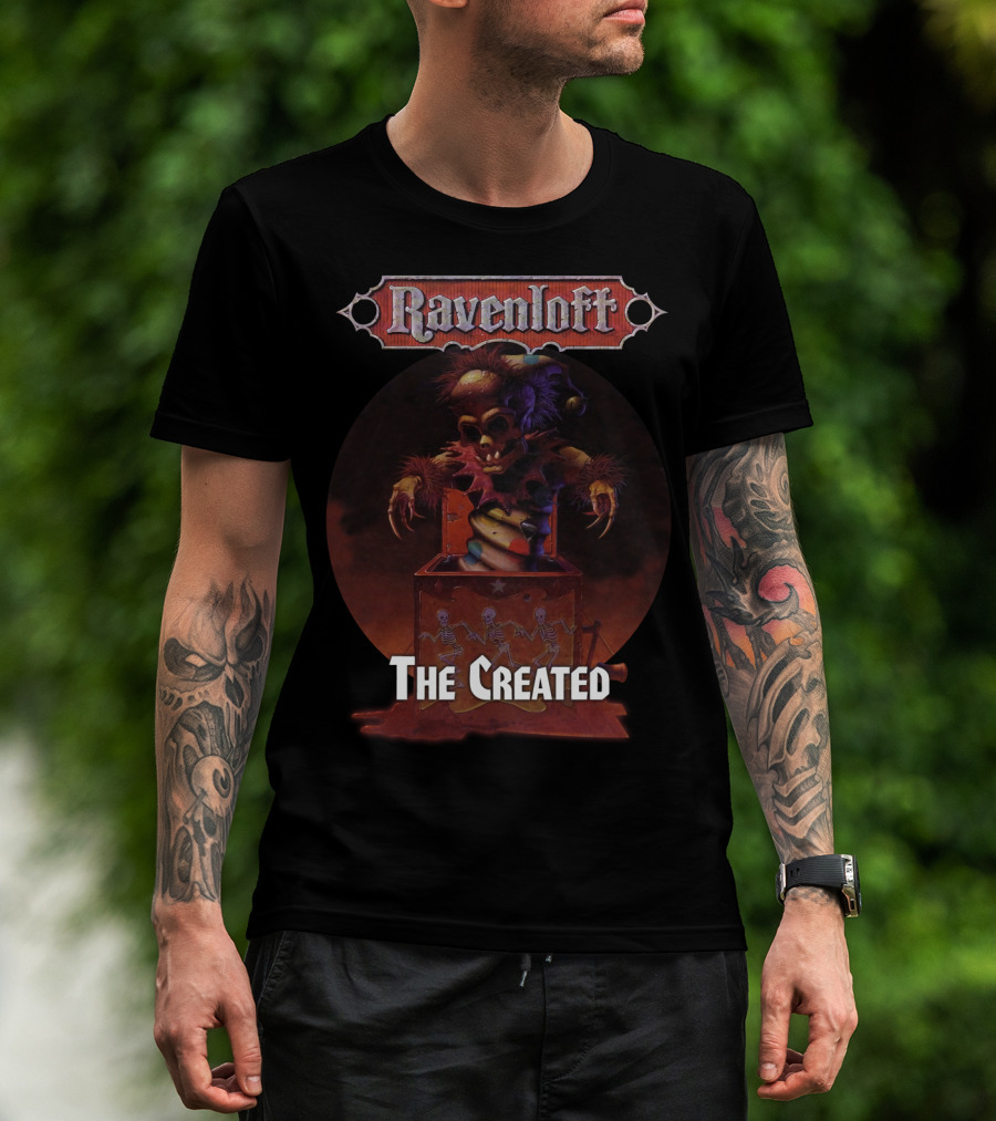 The Ravenloft The Created Creepy Puppet Box with Skeletons T-shirt is designed for everyday wear and a consistent fit. Fabric is pre-shrunk ring-spun cotton with durable stitching. See the size chart below for exact measurements.