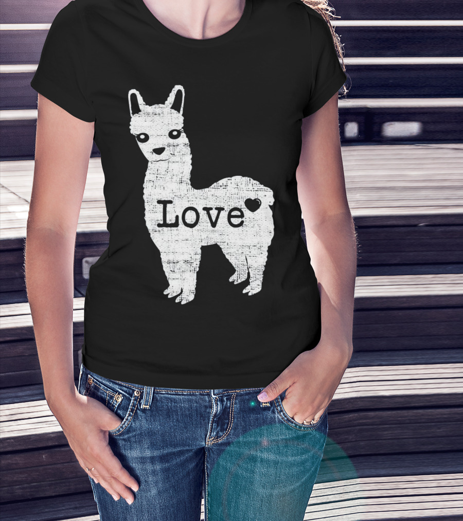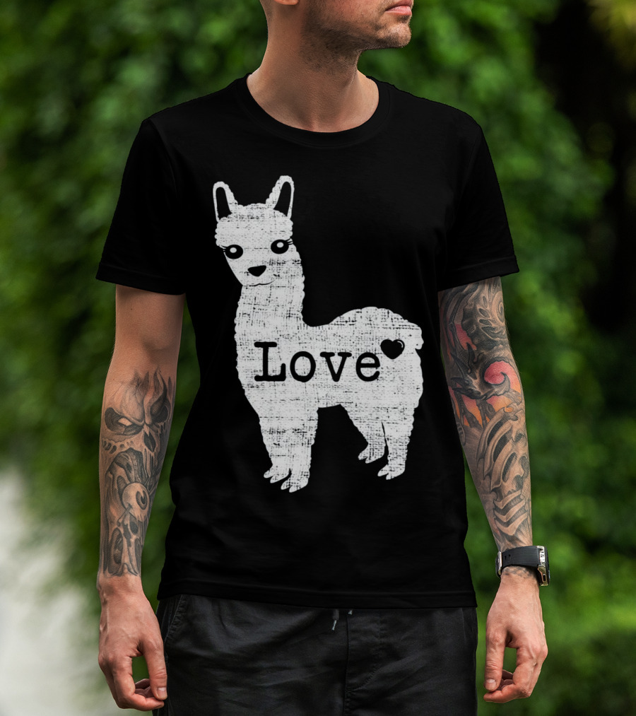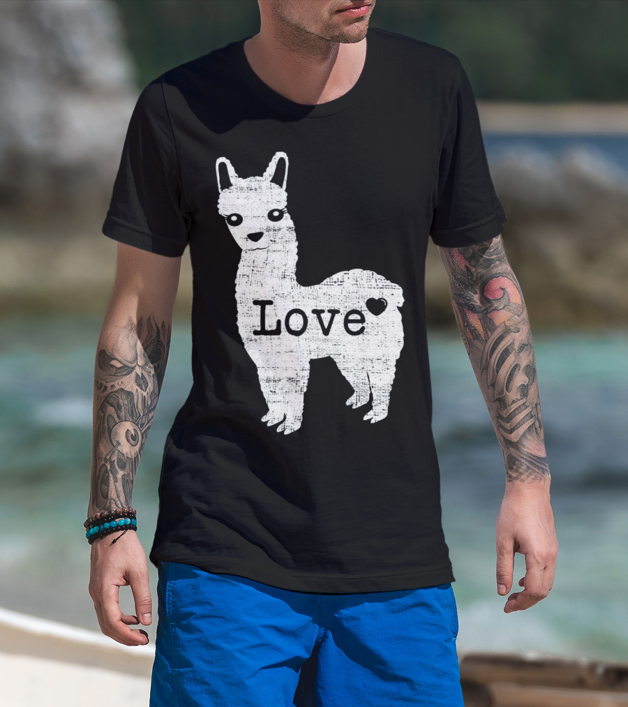 Llama Love Distressed Heart Design With Alpaca T-Shirt