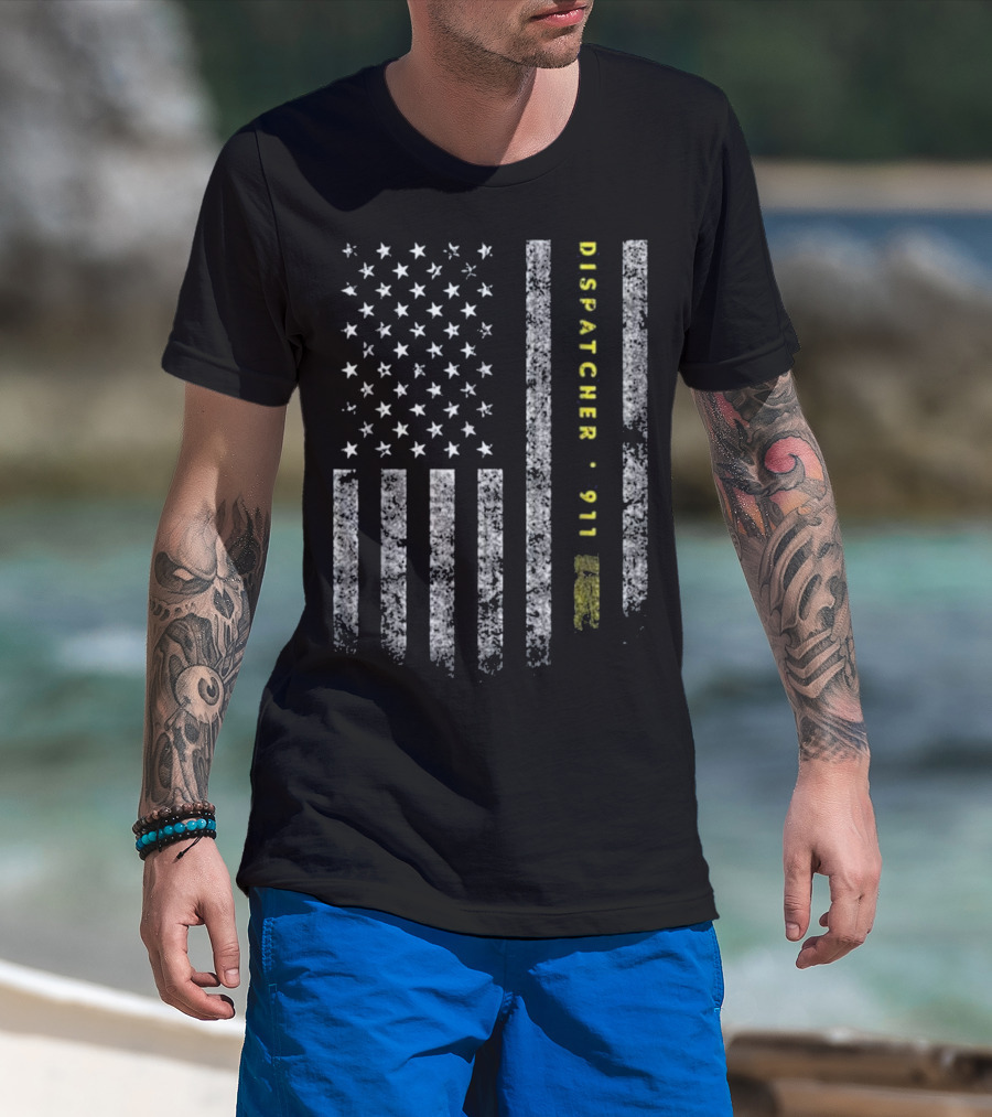 American Flag Dispatcher 911 Gold Line T-Shirt