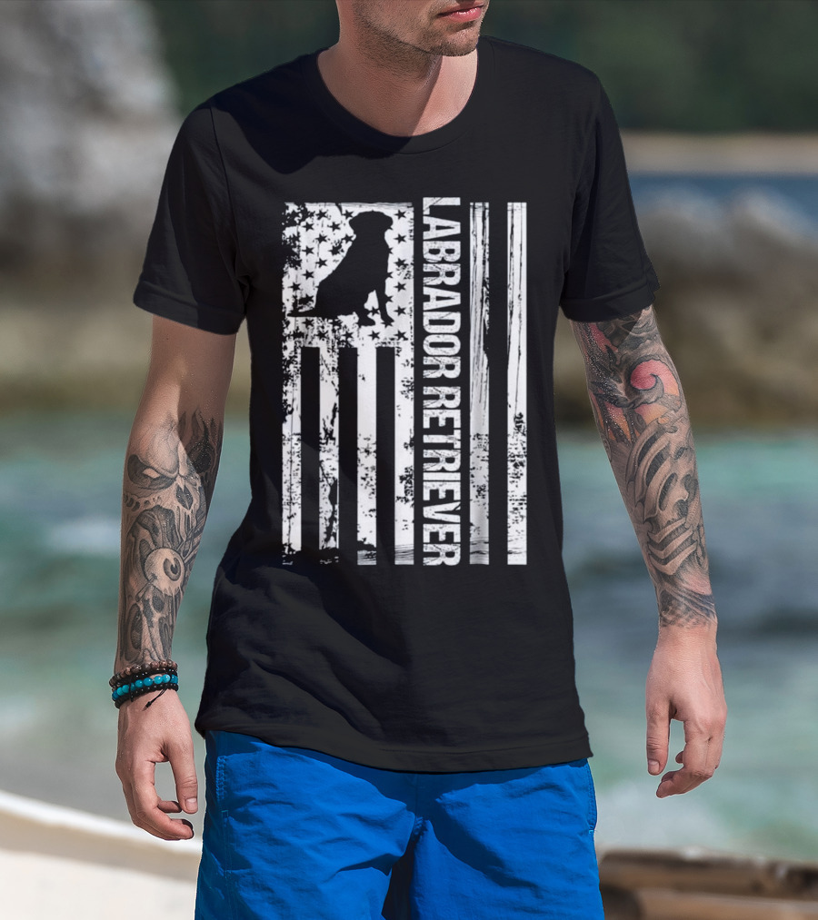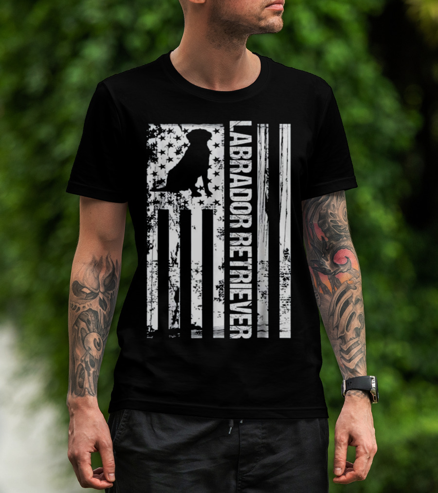 The American Labrador Retriever Flag T-shirt is designed for everyday wear and a consistent fit. Fabric is pre-shrunk ring-spun cotton with durable stitching. See the size chart below for exact measurements.