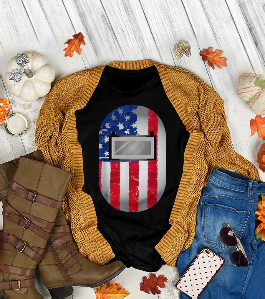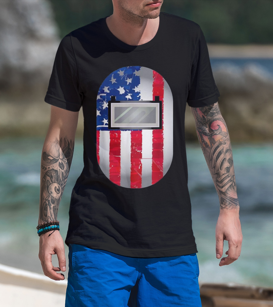 American Welder US Flag Helmet Welding Prowess T-Shirt