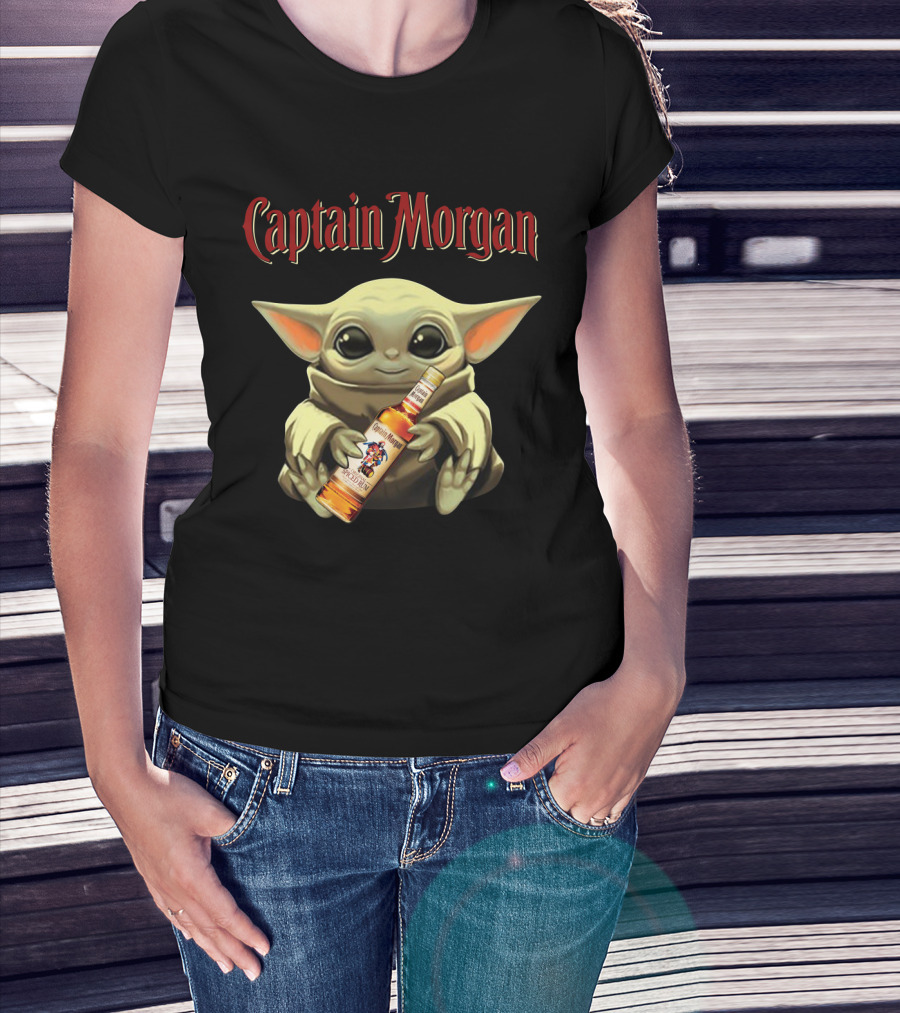 Captain Morgan Baby Yoda Holding Rum Bottle T-Shirt