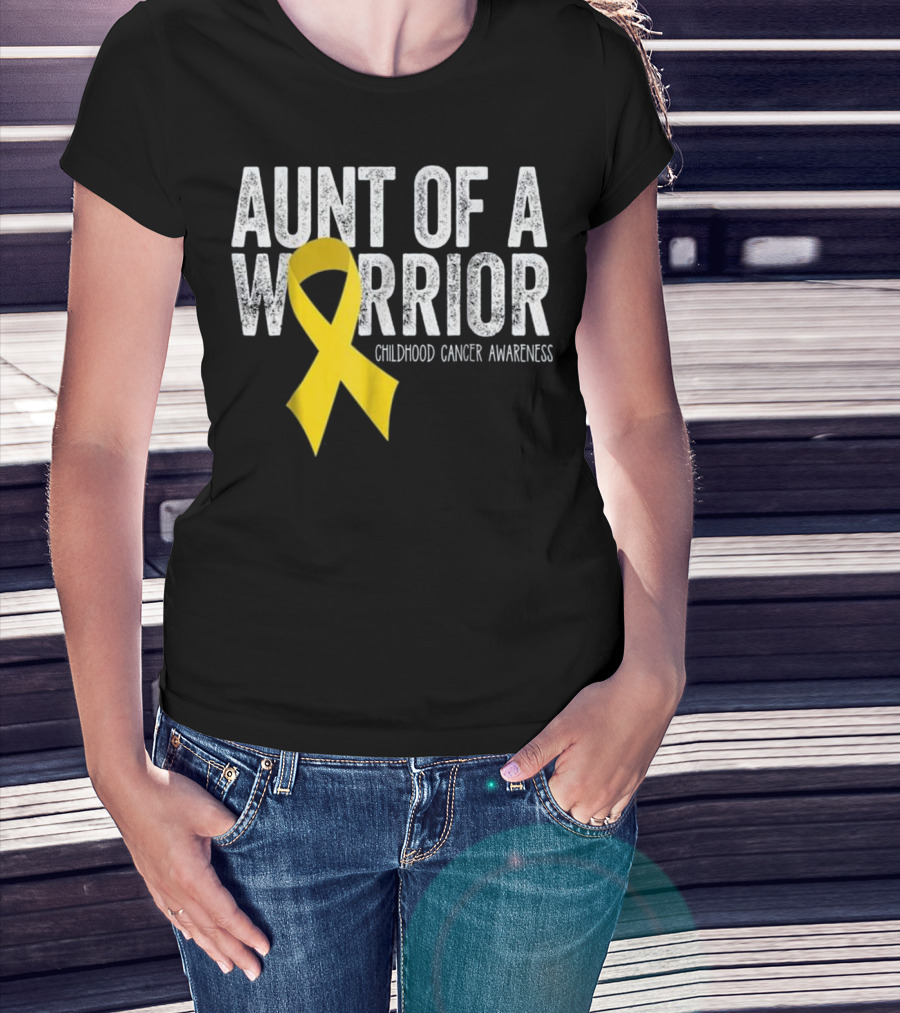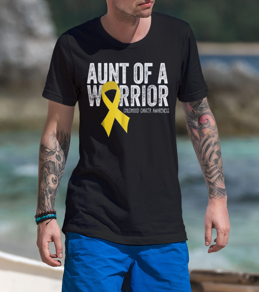 Aunt Of A Warrior Childhood Cancer Awareness Yellow T-Shirt