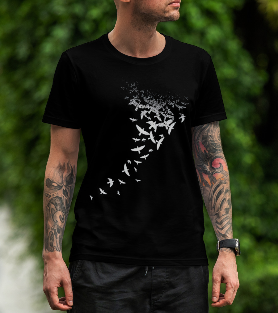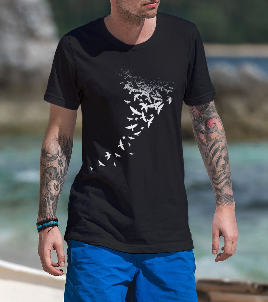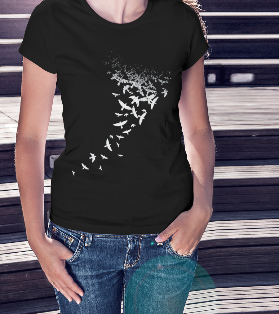 Birds In Flight Silhouette Pattern Flock T-Shirt
