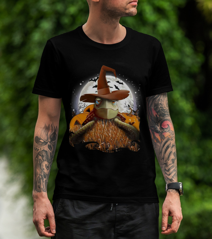 Halloween Turtle In Witch Hat Moonlit Pumpkin Patch T-Shirt