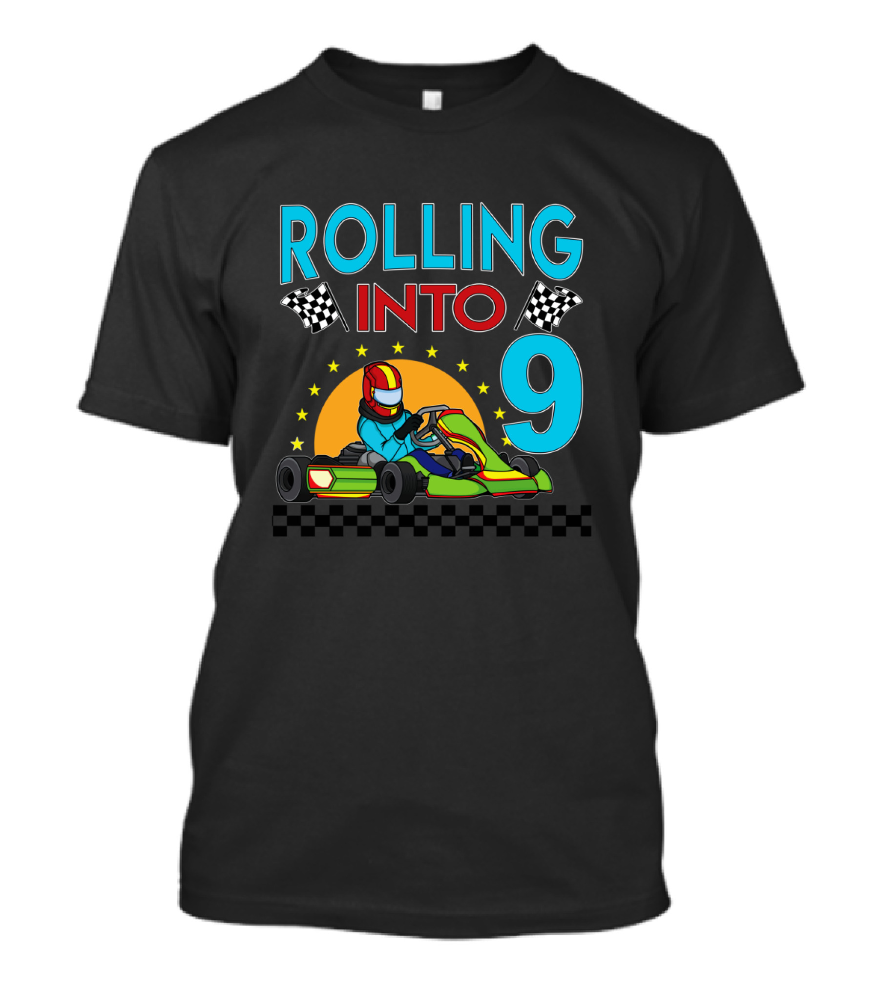 Rolling Into 9 Go Kart Racing With Checkered Flags Racer T-Shirt
