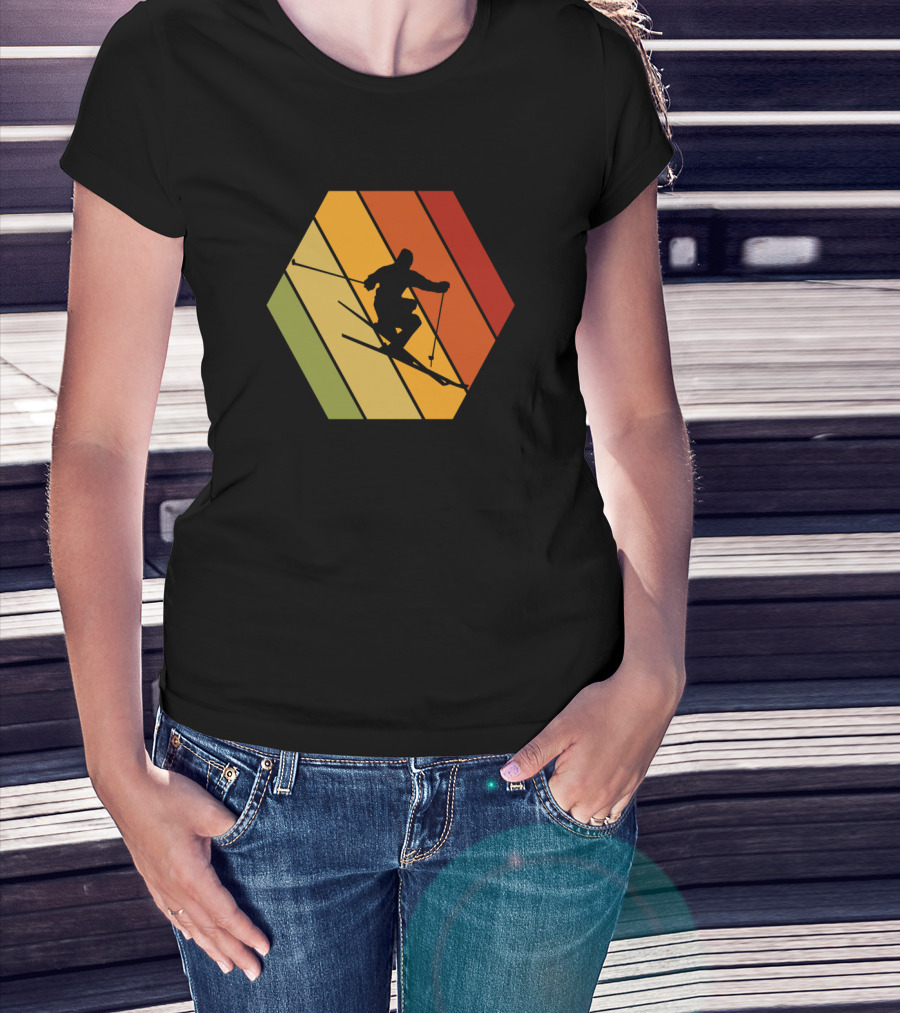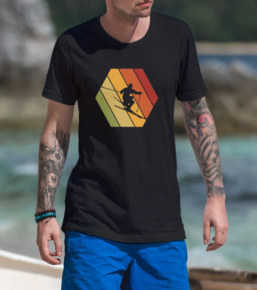 Retro Vintage Skiing Hexagonal T-Shirt