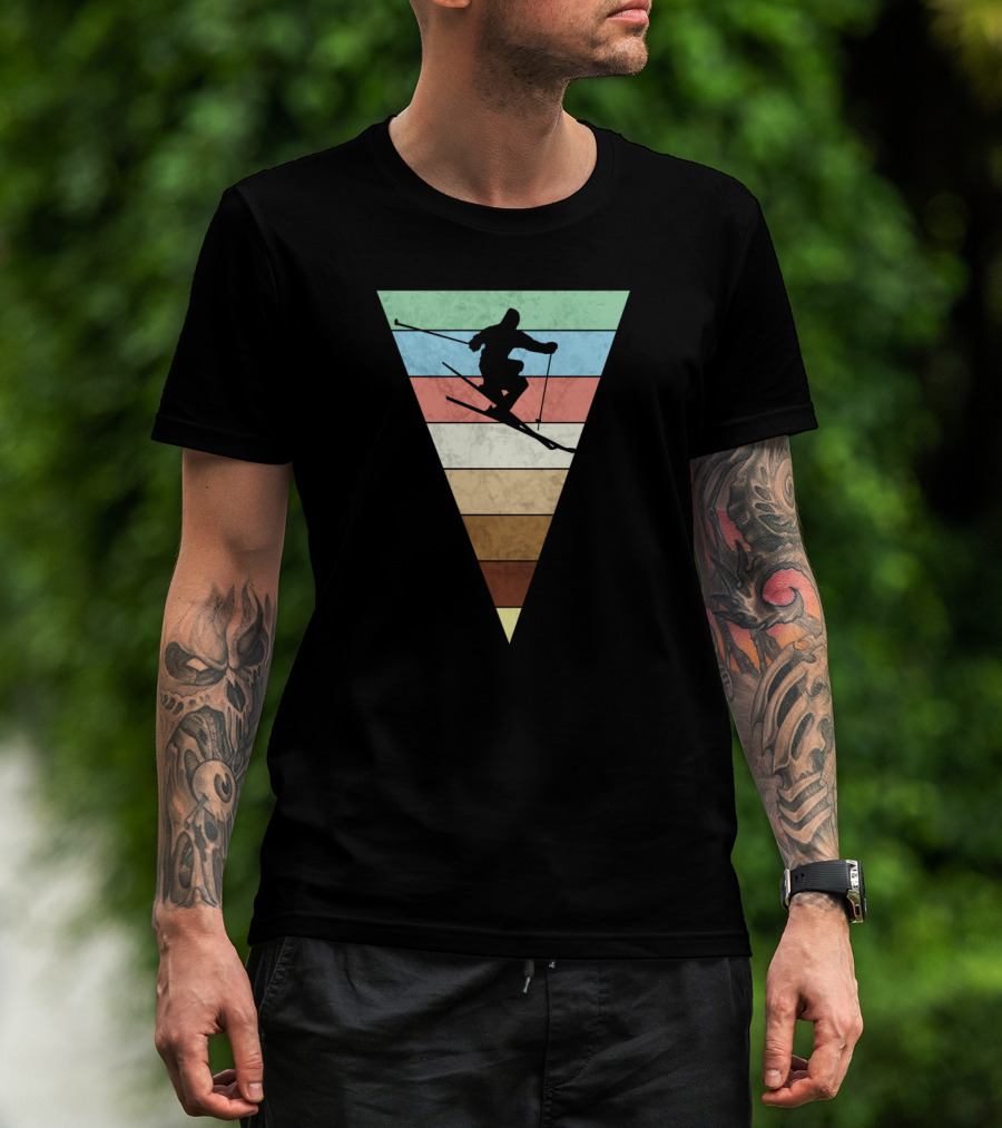 Skiing Vintage Print Silhouette With Retro Stripes For Skiers T-Shirt