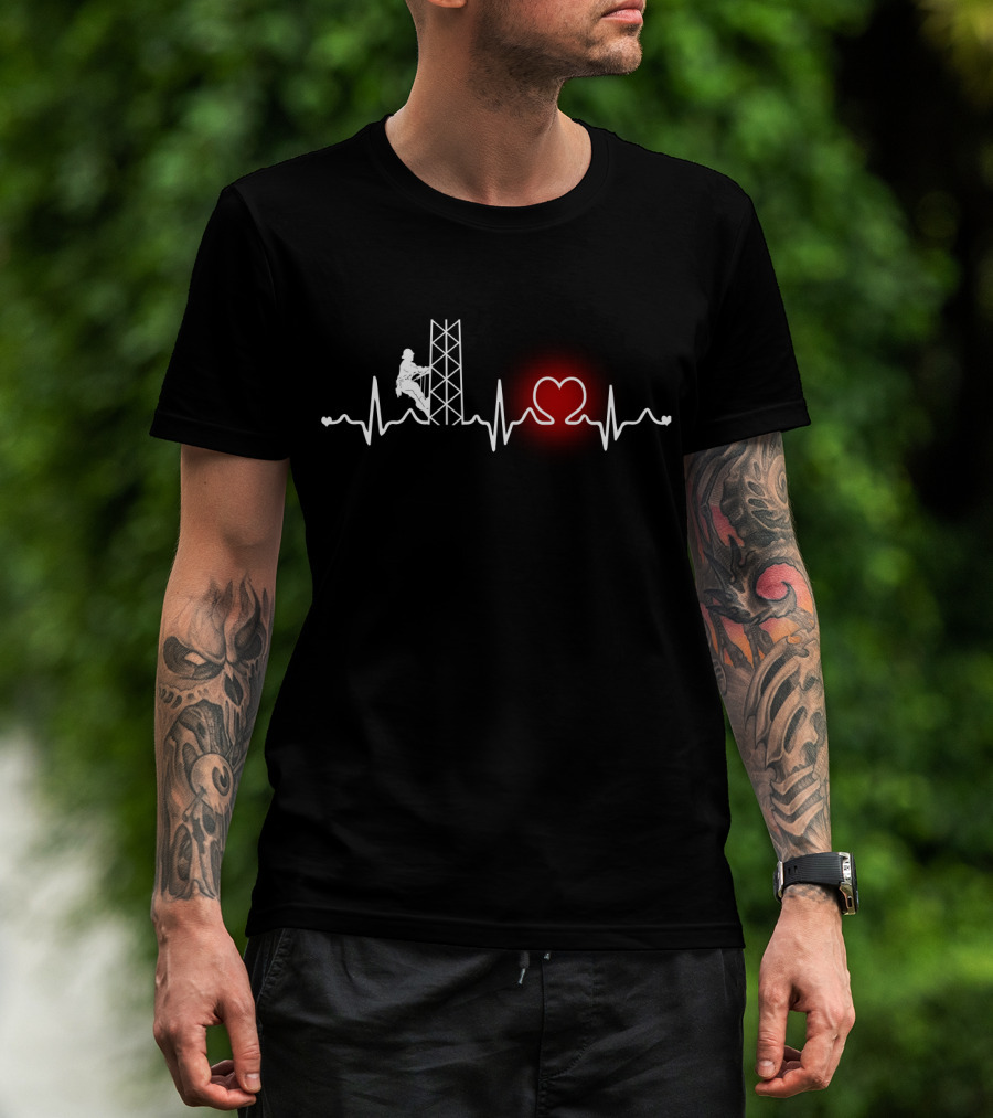 Heartbeat Tower Climber Heartbeat Line With Climber And Heart T-Shirt