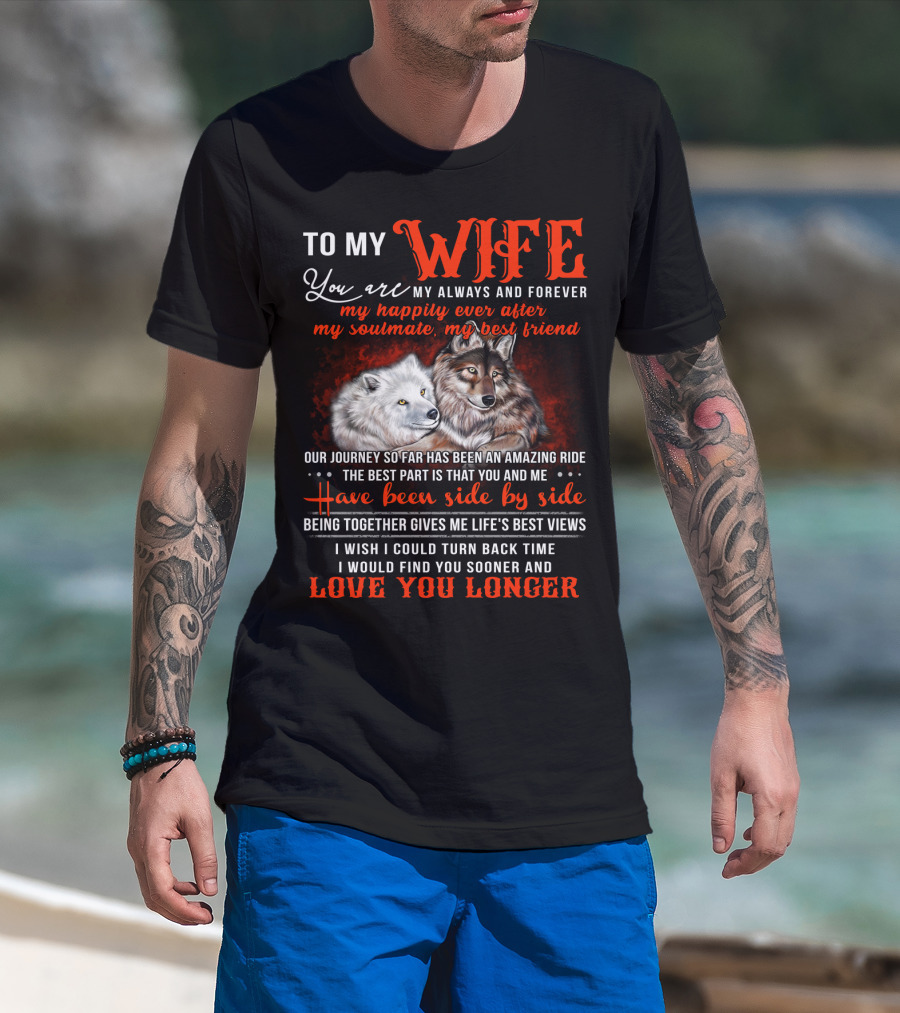 To My Wife You Are My Always And Forever Wolves Our Journey So Far Has Been An Amazing Ride Have Been Side By Side Love You Longer T-Shirt