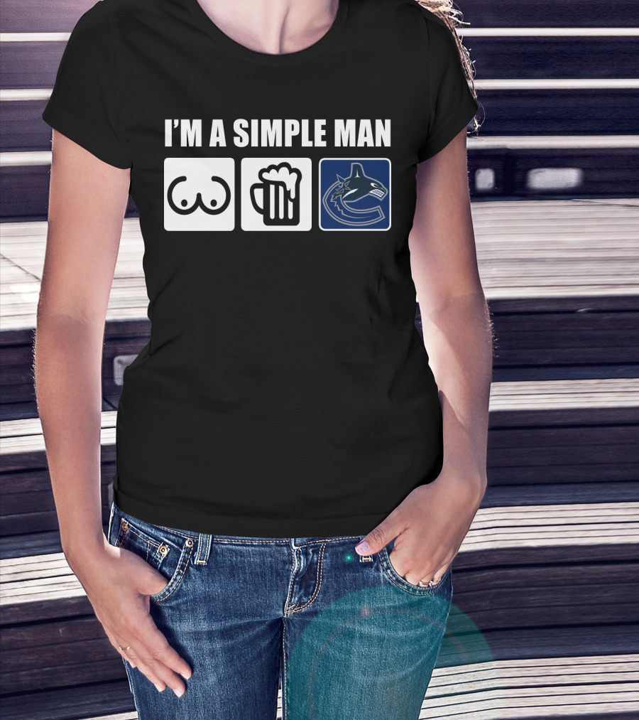 I'M A SIMPLE MAN CANUCKS BEER HOCKEY LOGO ICONS T-Shirt