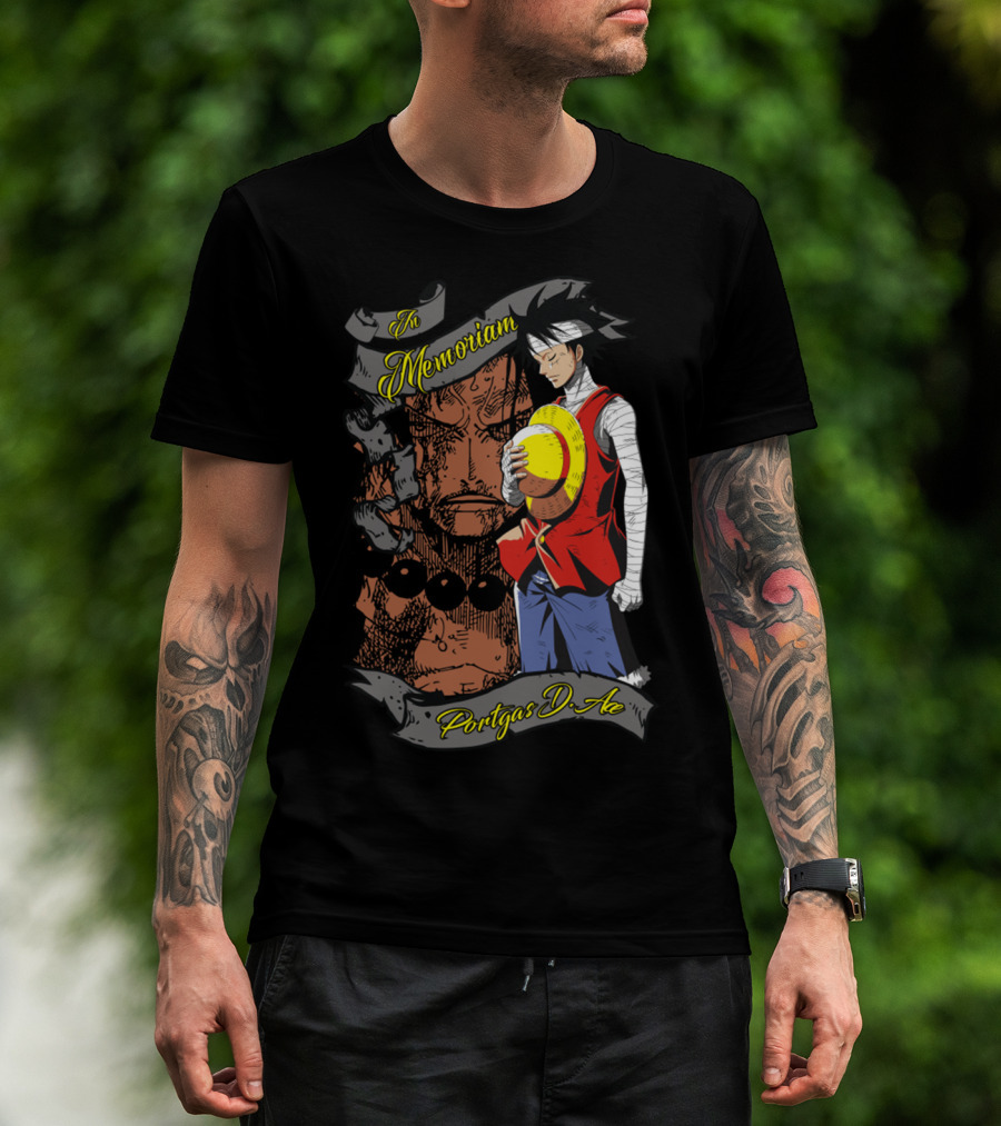 The In Memoriam Portgas D. Ace T-shirt is designed for everyday wear and a consistent fit. Fabric is pre-shrunk ring-spun cotton with durable stitching. See the size chart below for exact measurements.