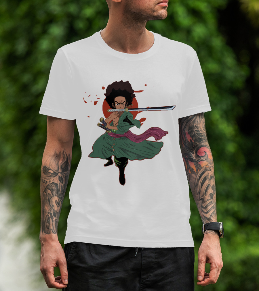 Huey Freeman X Roronoa Zoro Samurai Sword Fighter T-Shirt